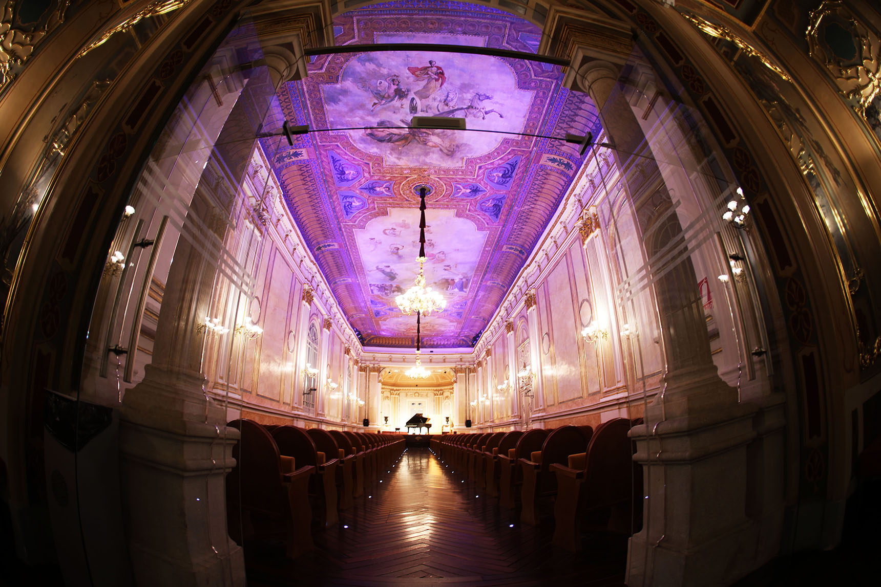 La Fundación Obra Social Unicaja cede a la Sociedad Filarmónica de Málaga el uso de la Sala que además de ser de una belleza extraordinaria, es reconocida en los ámbitos musicales de toda Europa como una de las salas de mejor acústica.